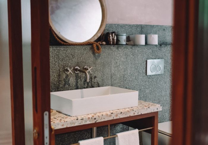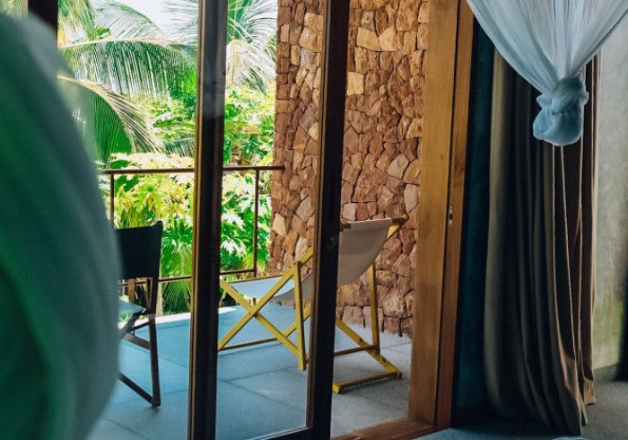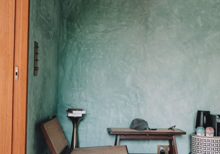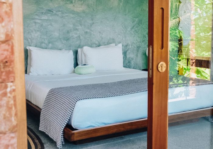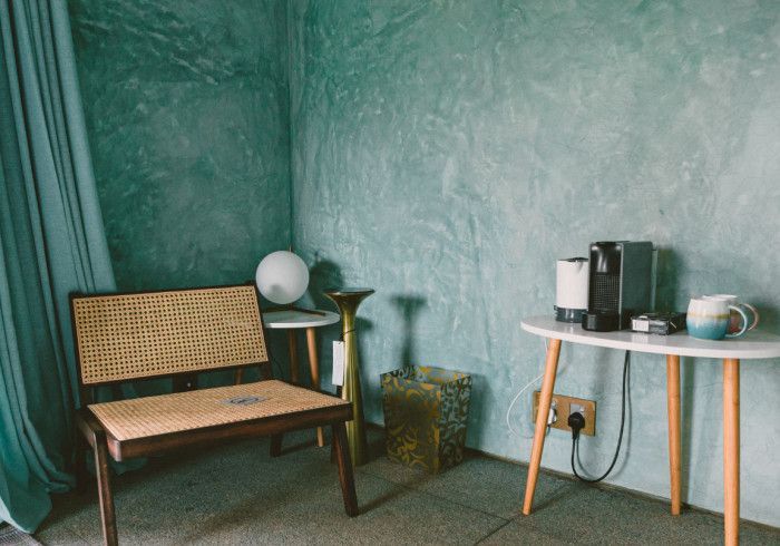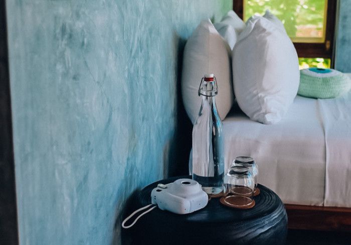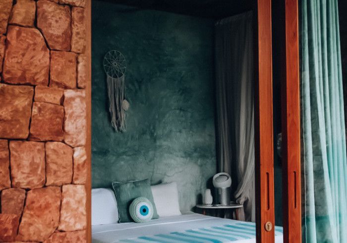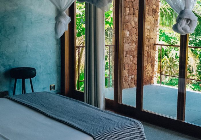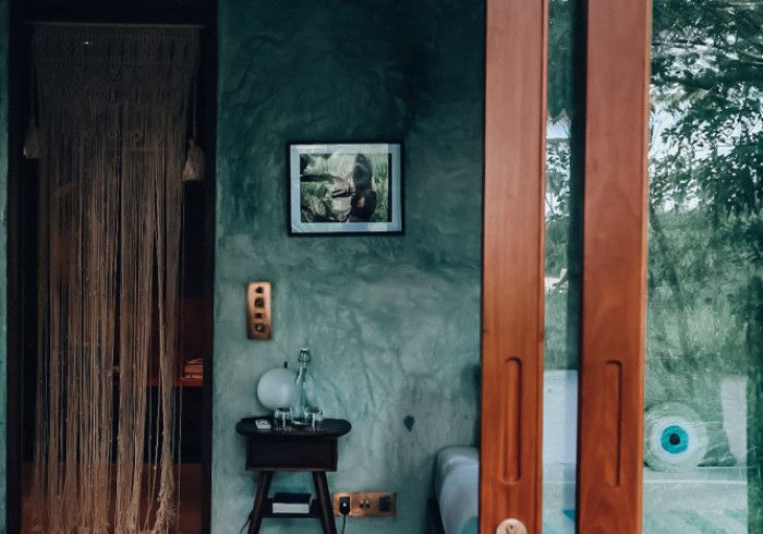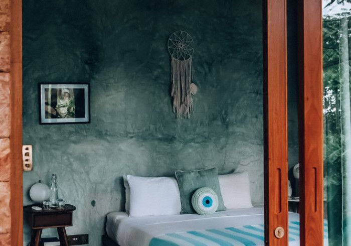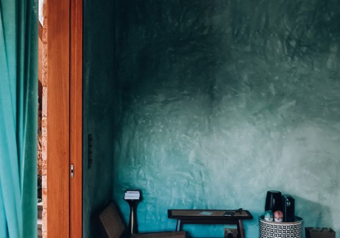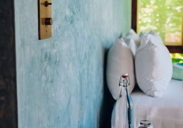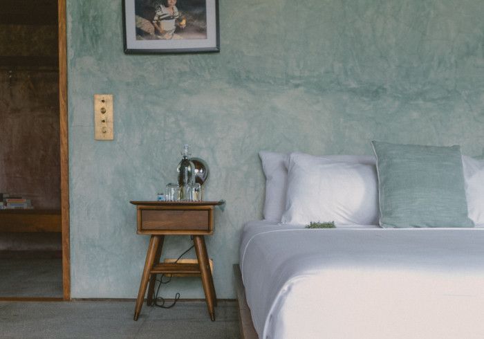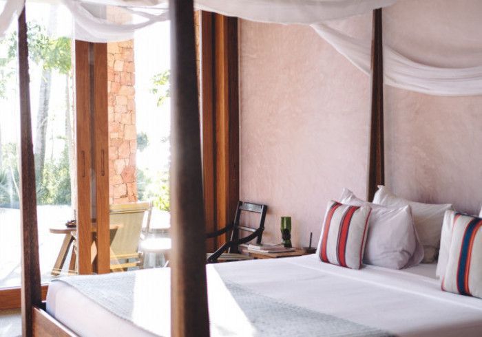 each of our rooms is designed by a different muse. artist malene bach was one of our favorite collaborators on kizikula: every color used on the project - from walls, to furniture, to ceilings - was developed on site over many weeks by malene working with and inspired by local colors, artisans, and materials.