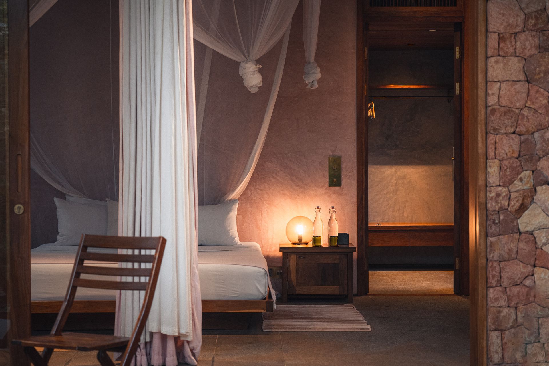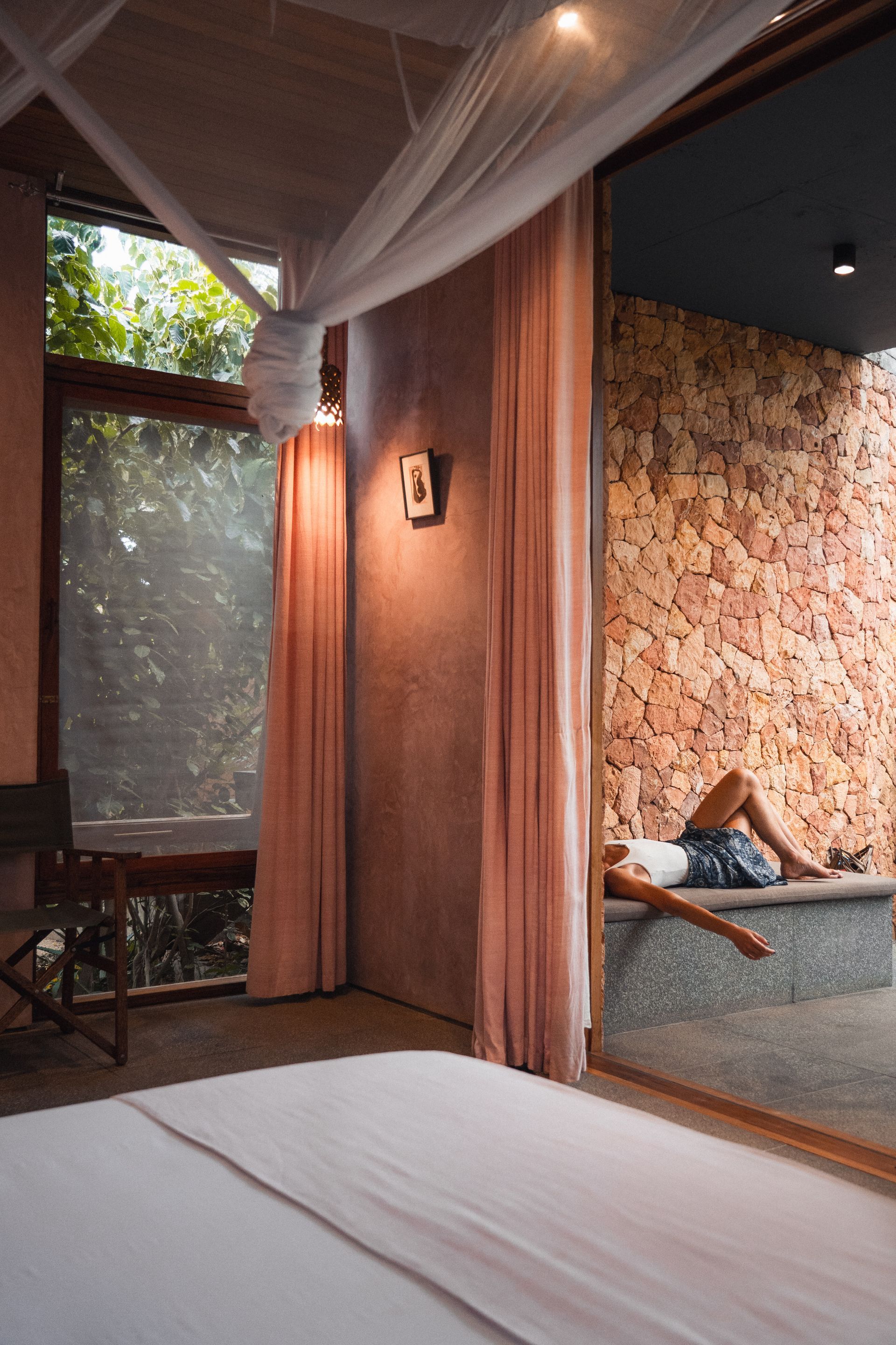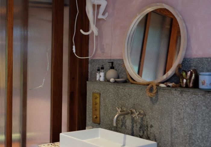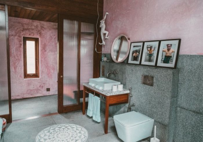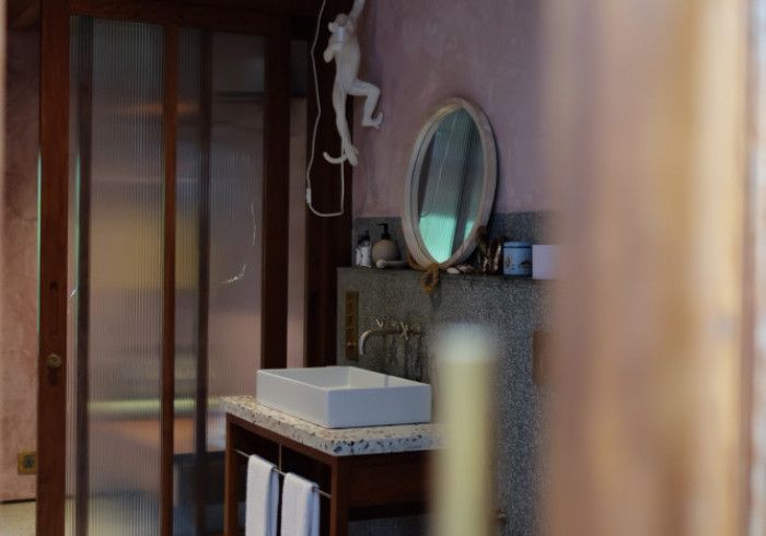 perhaps our most private room, designed by mona - founder of a boutique hotel and gallery in dubai who has inspired kizikula deeply over the years. mona opted for hues of pink in the bedroom and an all-coral bathroom.