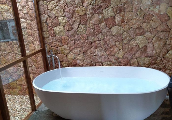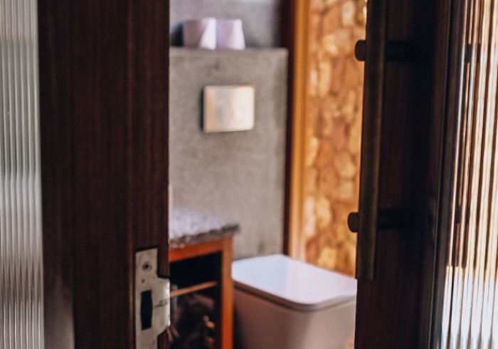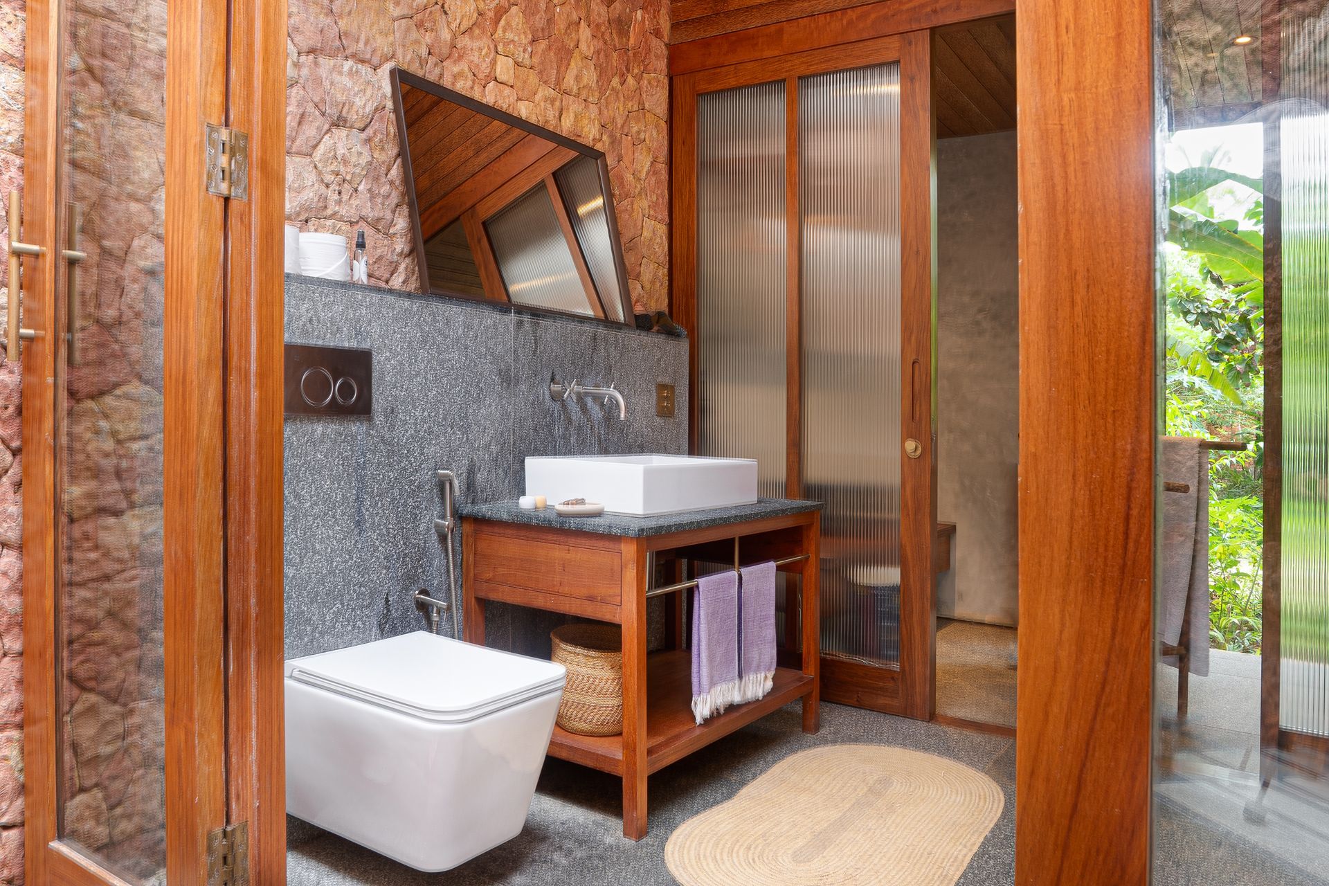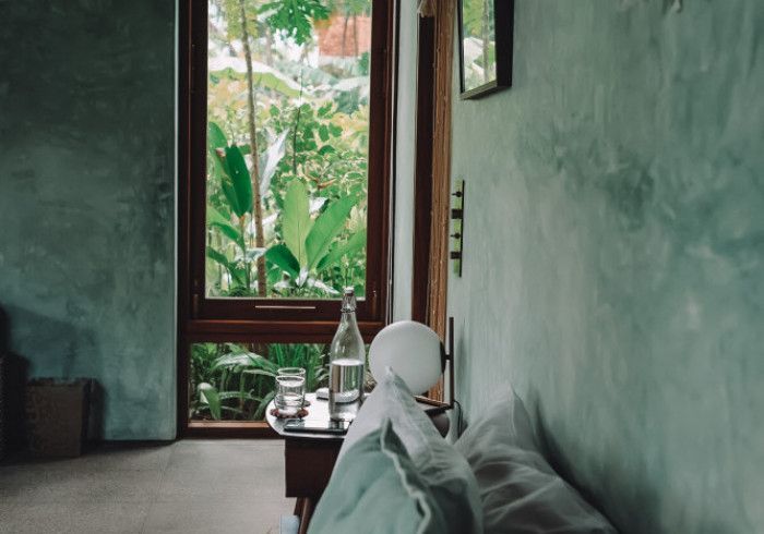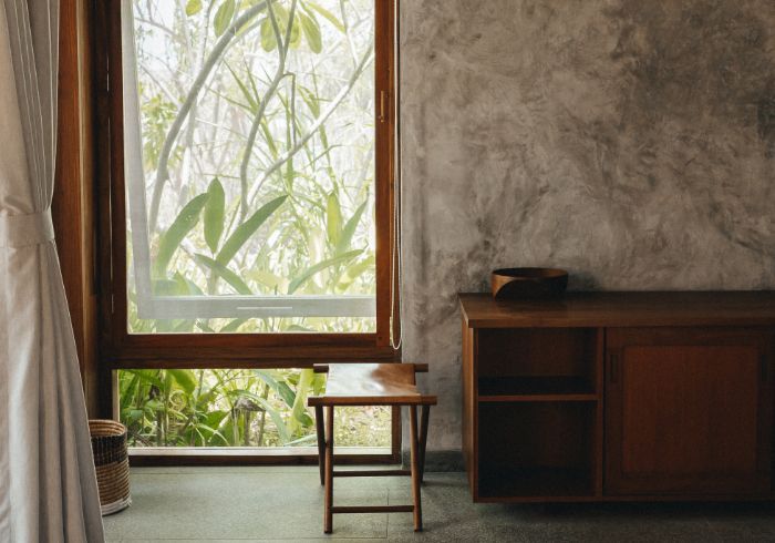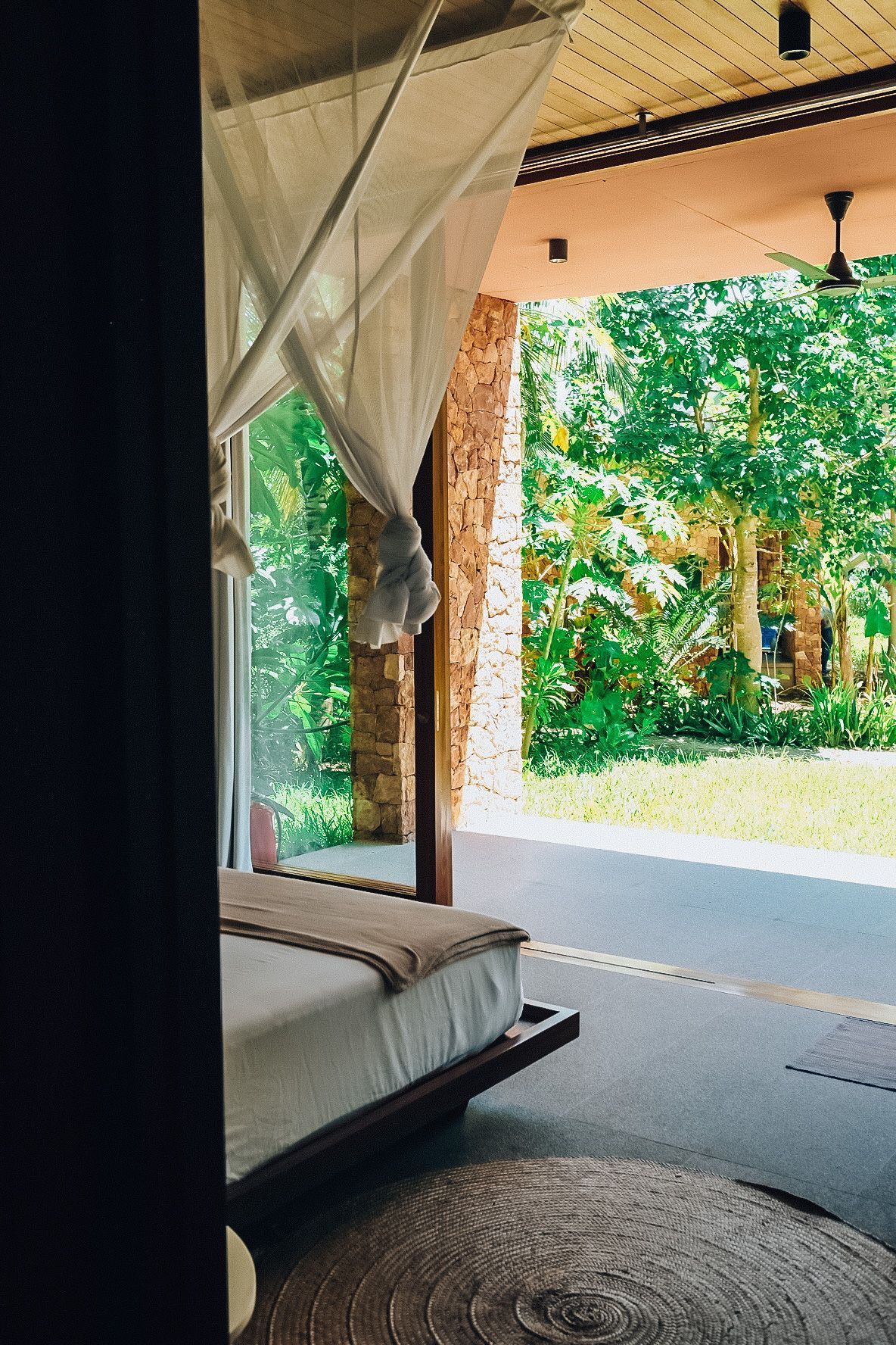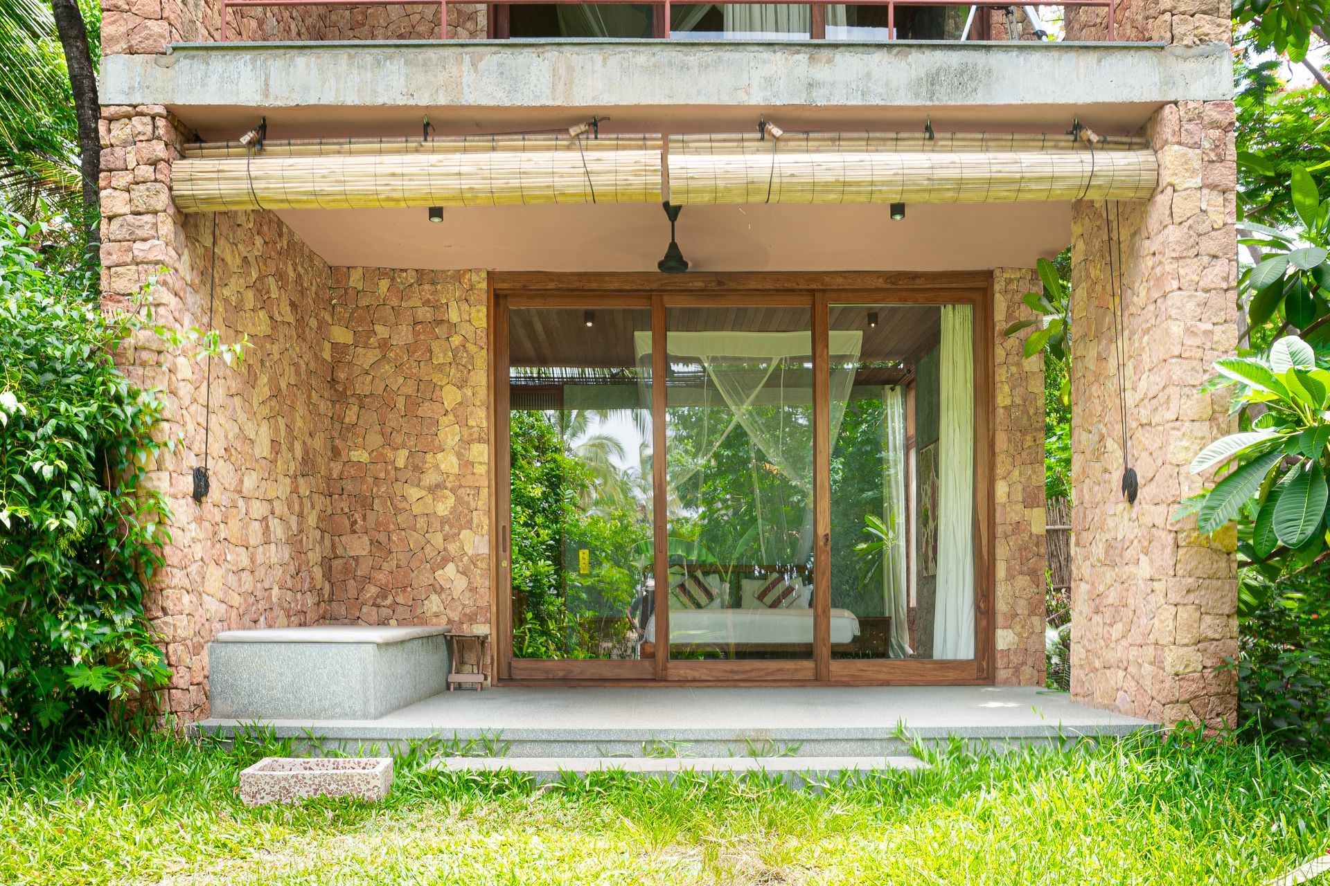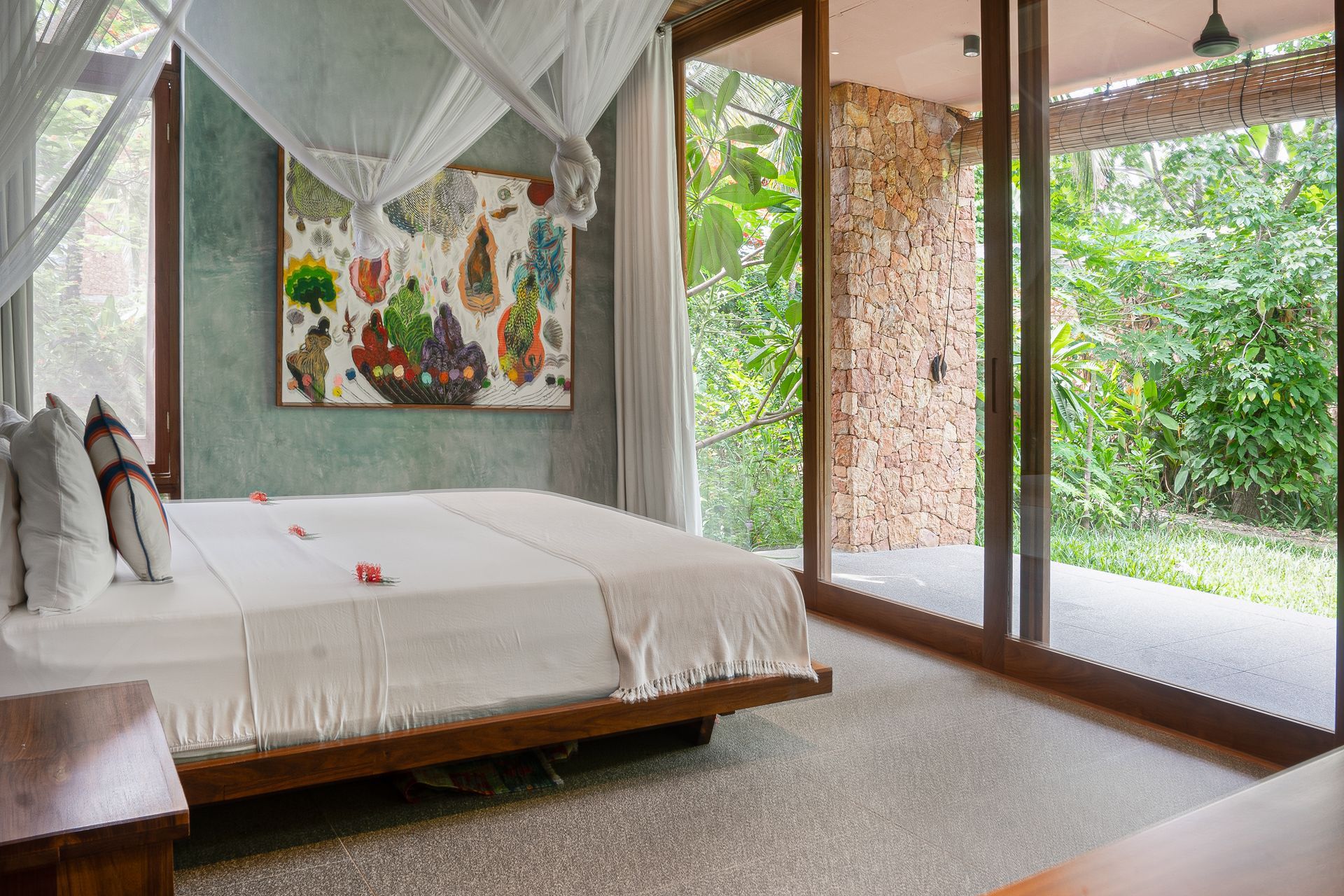 meitha's room is a ground floor at the center of the property, overlooking the garden, the kitchen, and the pool. enjoy the indulgent indoor and outdoor showers. AC. hair-drier on request.